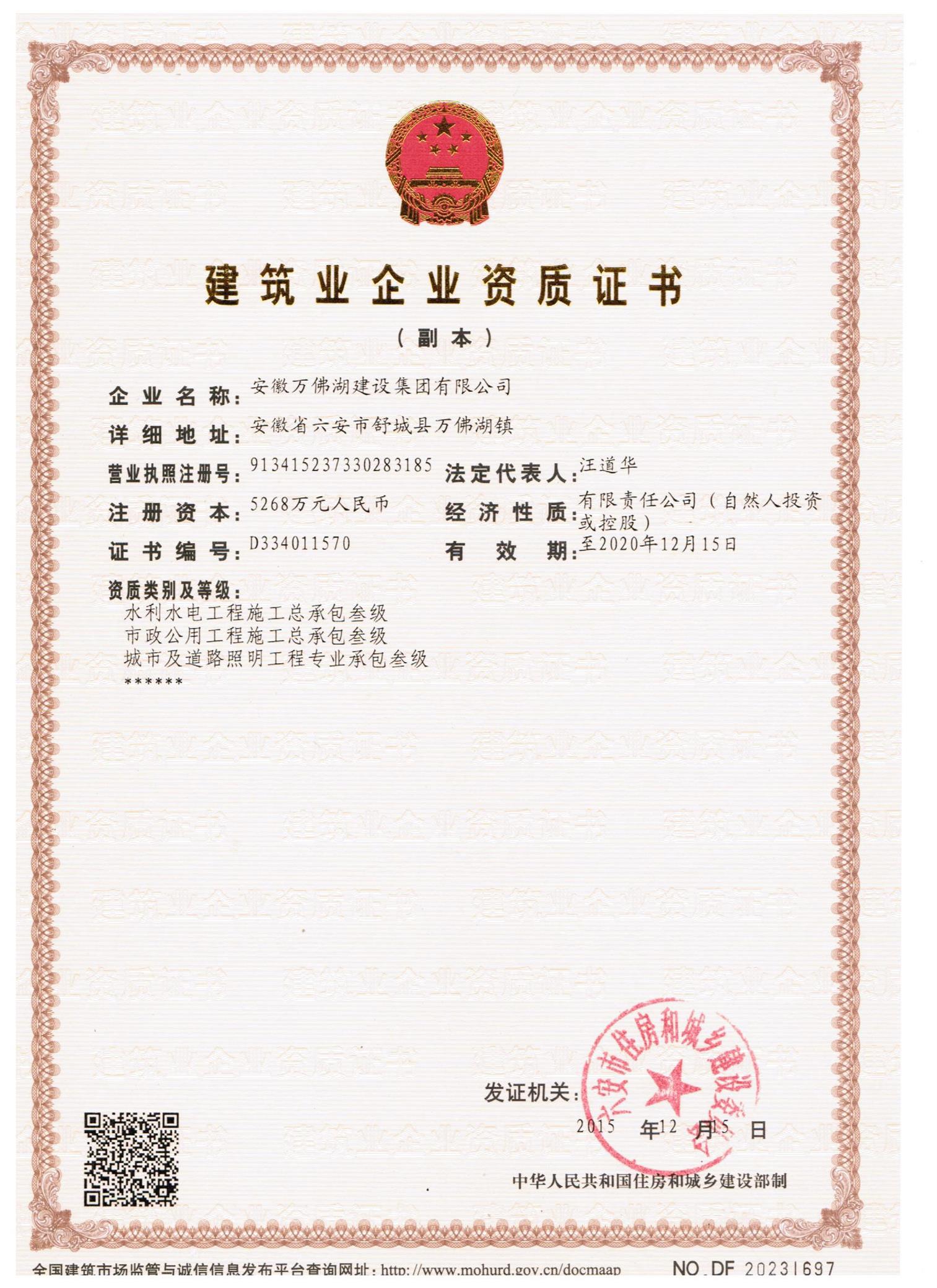 公司簡(jiǎn)介 安徽萬(wàn)佛湖建設(shè)集團(tuán)有限公司成立于2001年8月,是舒城縣規(guī)上企業(yè),現(xiàn)有職工1600多人,注冊(cè)資本5268萬(wàn)元,年實(shí)現(xiàn)產(chǎn)值5.45億元,年納稅2285萬(wàn)元。集團(tuán)旗下?lián)碛惺娉侨f(wàn)佛湖建筑勞務(wù)有限公司、安徽龍舒房地產(chǎn)開(kāi)發(fā)有限公司、安徽玖盛建設(shè)工程有限責(zé)任公司、舒城萬(wàn)發(fā)建筑材料銷(xiāo)售有限公司四個(gè)子公司。內(nèi)設(shè)工經(jīng)部、財(cái)務(wù)部、法務(wù)部、項(xiàng)目管理部、綜合辦公室、檔案室六個(gè)職能部室;成立了安全生產(chǎn)、技術(shù)質(zhì)量、環(huán)境保護(hù)、合同管理和愛(ài)心活動(dòng)五個(gè)領(lǐng)導(dǎo)小組;設(shè)立了公司黨支部、工會(huì)和關(guān)工委三個(gè)黨群組織。公司經(jīng)營(yíng)資質(zhì):房屋建筑工程施工總承包壹級(jí)、建...